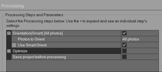 What are the next steps? As the message indicates, you can try the orientation step without the final optimization step. This is done using the Process tool (Create tab of toolbar). Choose Smart Orient and turn off Optimize. The Processing dialog will look like this: