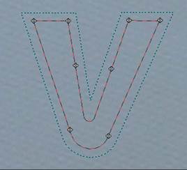If the distance is increased the area in the center of the V causes self-intersections so it is adjusted to create a shallower ‘V’ in the Outline Offset (left). Increasing the distance again and the self intersections means the ‘V’ in the Outline Offset is virtually removed (right).