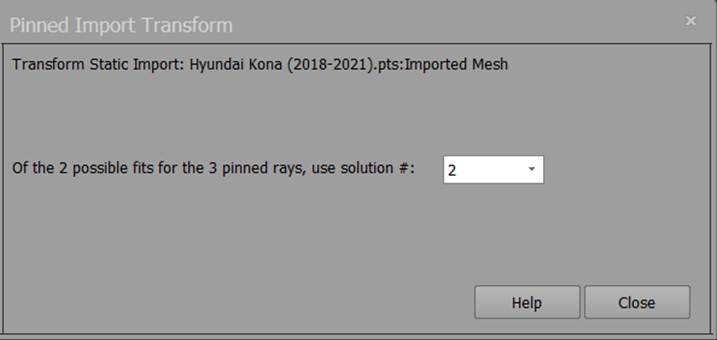When there are three assigned points, there may be more than one solution. In this case, all the movement controls are replaced on the dialog with a drop-down for picking the solution. Changing the value in the drop-down will immediately switch the positioning and rotation to that solution.