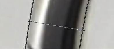 To draw the tube width, move the mouse to extend the width line to the opposite edge of the tube as shown here, as close as possible to the actual width of the opposite side of the tube (highlighted yellow):