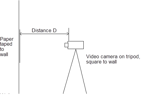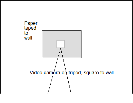• Look through the video camera viewfinder and center the paper in the viewfinder. Move the camera such that about 3/4 of the image is taken up. Make sure the camera is in focus and the camera is still level and square to the wall.