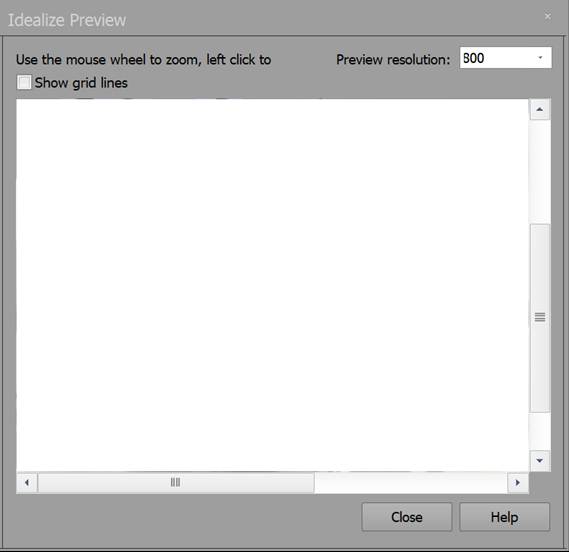 The ‘Preview resolution’ drop down provides different sizes to the idealize calculation (smaller is faster). And the ‘Show grid lines’ checkbox will add straight grid lines to the image before idealization so you can see what they look like after being idealized.