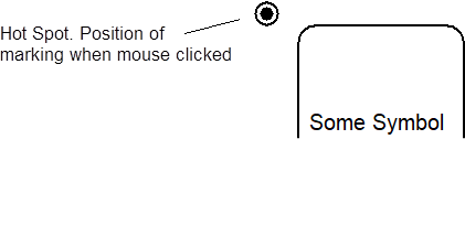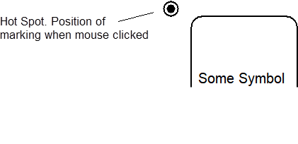 When in these modes, PhotoModeler changes the cursor so that you will know what mode you are in and so you have a precise location to mark. The cursors are large enough to see without straining and yet they also have a small dot for precise point positioning. All the cursors have the following form: