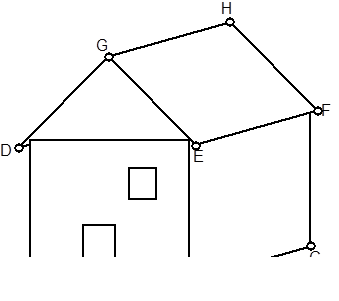 The user should mark each point that is required in the 3D model. For instance if you are modeling the house shown below, the points A through H, at the very least, will be of interest to you. They should be marked on each photograph on which they are visible.