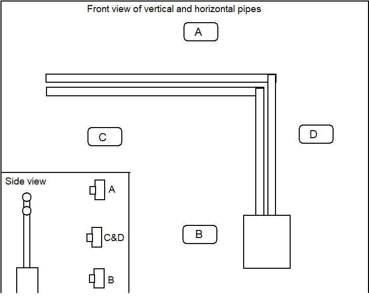 Photographs C and D are good photographs for marking the vertical pipes but are poor for the horizontal pipes.