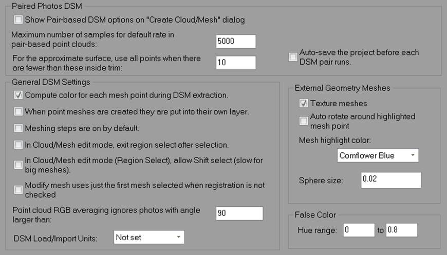 This page has the preference for the Dense Surface settings. See the Dense Surface Modeling / PhotoModeler Premium section for more details on these types of projects.