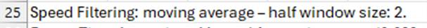 The CSV file report has a row at the bottom indicating which speed filtering method was used: