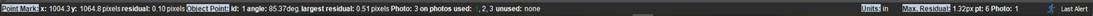 When the Max. Residual section of the Status Bar is clicked, a tool menu appears which when clicked shows the photo and selects the point mark with the highest residual (and the photo is brought to the front). This feature is only enabled while in certain modes.
